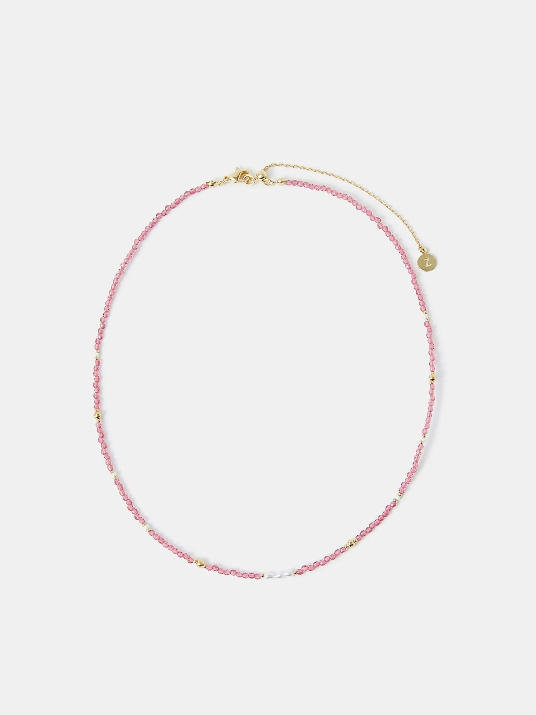 Verleihen Sie Ihrer Schmucksammlung mit dieser bezaubernden Halskette einen Farbtupfer. Sie ist mit zierlichen Facettenperlen und Kunstperlen besetzt und wird mit einem Karabinerverschluss und einer Verlängerung geschlossen.