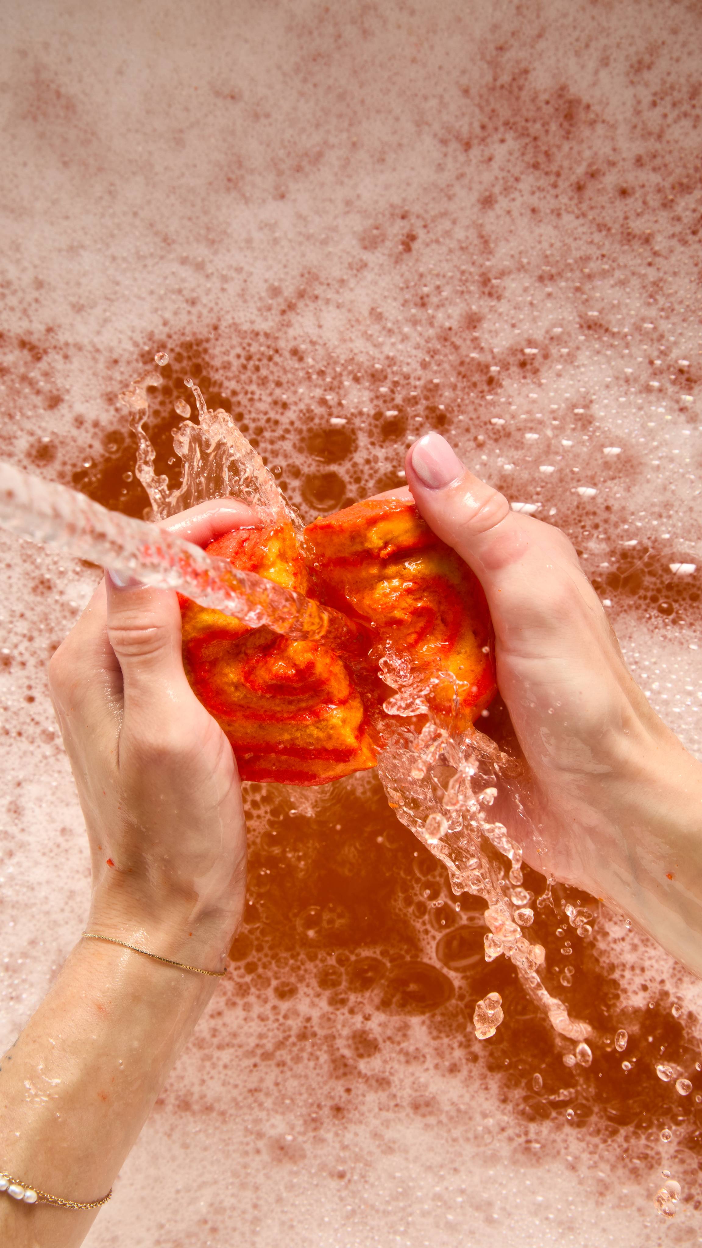 Dieses Schaumbad-Stück sorgt für gute Laune und lässt Sie das Leben von seiner schönsten Seite sehen. Wenn Sie Brightside unter den Wasserhahn geben, verwandelt sich Ihre Badewanne in einen leuchtenden, hypnotisierenden rot-orangenen Sonnenuntergang mit schaumigen, weißen Blasenwolken. Stellen Sie sich vor, Sie wären an einem sonnenverwöhnten Ort und steigen erfrischt und mit einem traumhaften Duft aus der Wanne – dank der belebenden, zitrusartigen Aromen von sizilianischer Mandarine, Tangerine und Bergamotte.