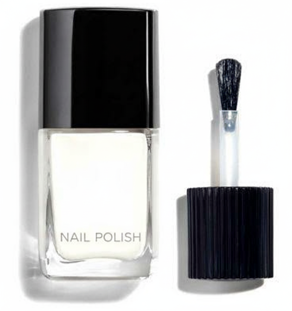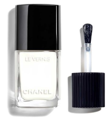 Experience the iconic CHANEL LE VERNIS Nail Colour, visible here in a striking opaque white shade. This premium formula delivers intense colour and a high-shine finish to your nails. The elegant, signature rectangular glass bottle features embossed branding, reflecting its sophisticated origin.