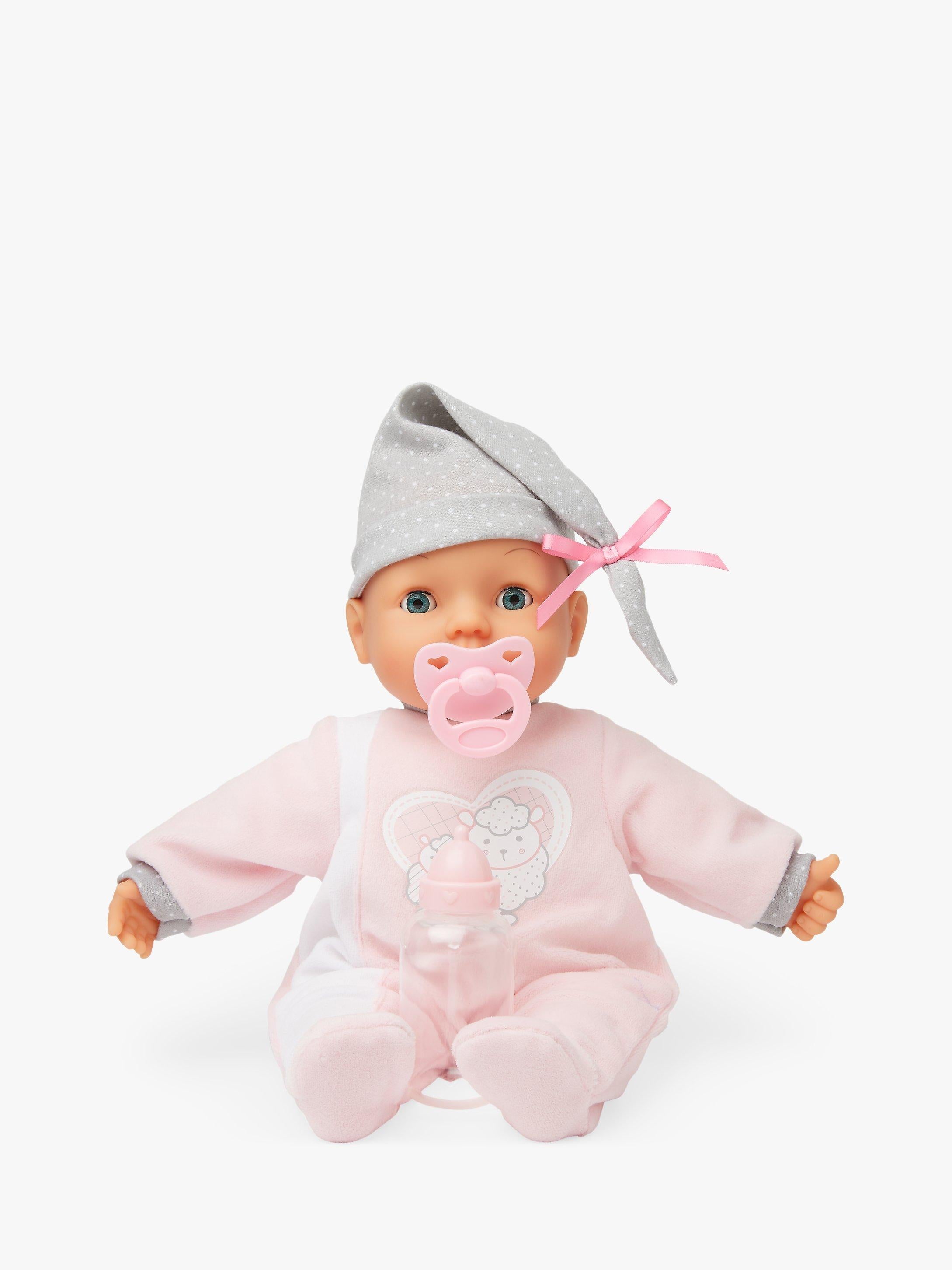 Gib dieser kleinen Puppe das Fläschchen und sieh zu, wie sie ihren Mund bewegt. Leg sie zum Schlafen hin und beobachte, wie sie die Augen schließt und sanft ins Land der Träume gleitet. Dieses entzückende Baby macht eine ganze Reihe süßer Geräusche, darunter Lachen, Trinken, Rülpsen und Weinen!