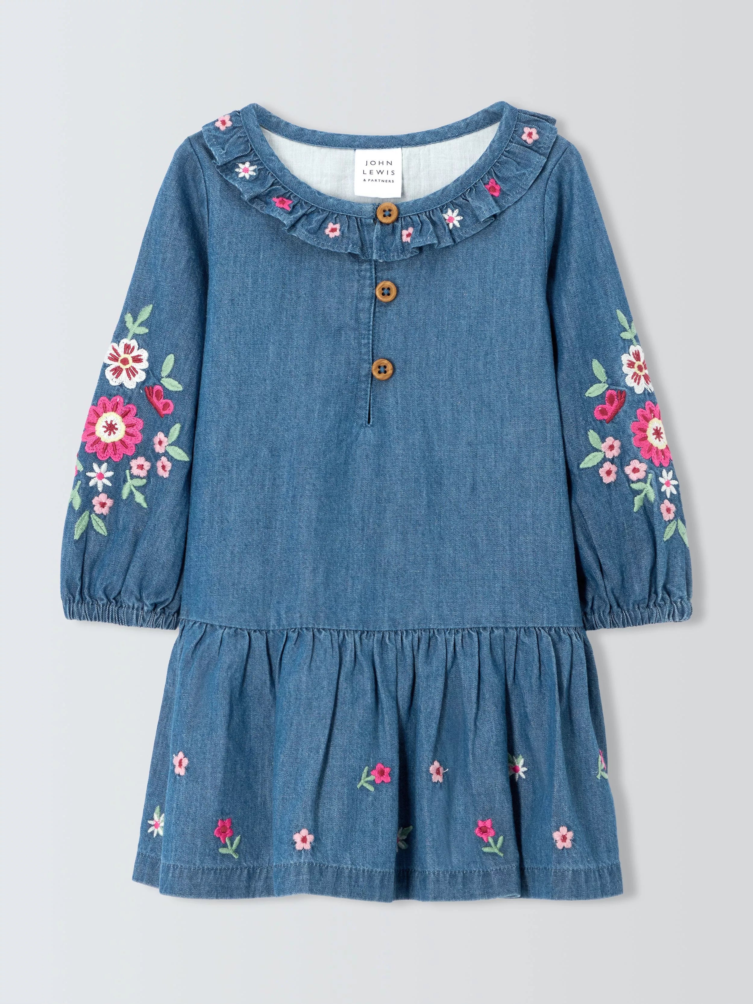 Dieses Modell verleiht dem klassischen Jeanskleid mit hübscher Blumenstickerei eine besondere Note. Die Knopfleiste vorne erleichtert das Anziehen, während die gerippten Bündchen für eine optimale Passform sorgen.