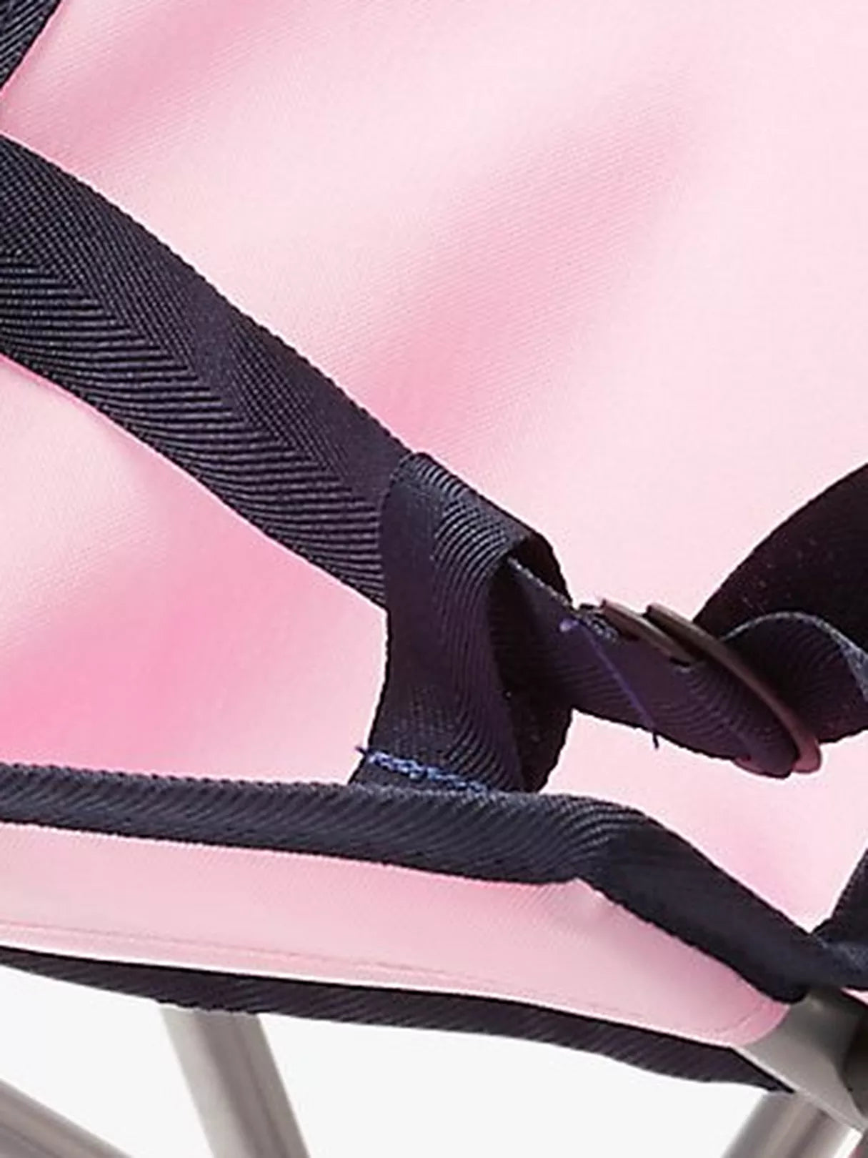 Dieser Puppenwagen verfügt über ein Geschirr, Doppelräder und Griffe im Regenschirmstil.