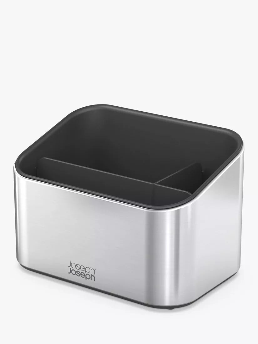 Mit seinem robusten Edelstahlkorpus und der Anti-Fingerprint-Beschichtung verleiht dieser elegante Spülbecken-Organizer Ihrem Spülbeckenbereich über viele Jahre hinweg einen Hauch von Klasse. Er verfügt über mehrere Fächer für Spülmittel, Bürsten und Schwämme, ein abgewinkeltes Design für leichteren Zugriff und rutschfeste Füße an der Unterseite.