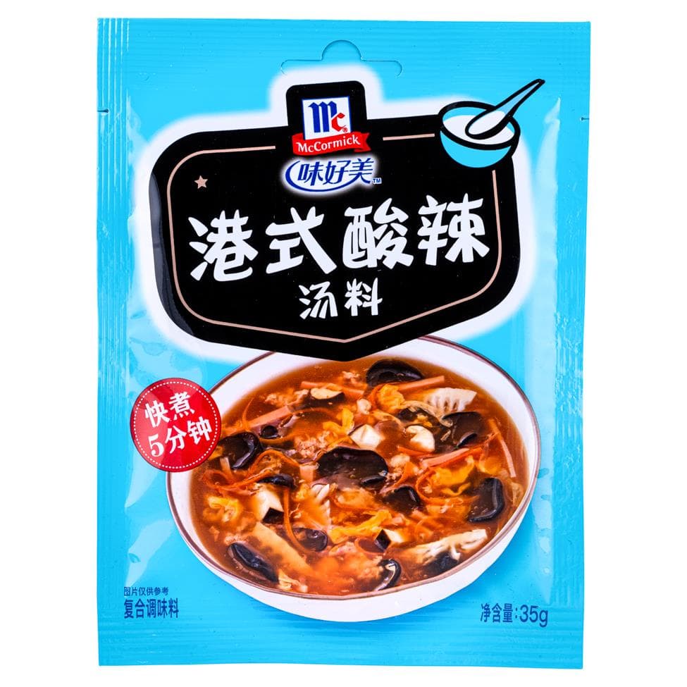McCormick Hong Kong Style Hot & Sour Soup Mix ist eine vielseitige und geschmackvolle Gewürzmischung, mit der Sie den authentischen Geschmack von scharfer und saurer Suppe nach Hongkonger Art ganz einfach zu Hause zubereiten können. McCormick, eine vertrauenswürdige Marke, die für ihre hochwertigen Gewürze und Würzmittel bekannt ist, hat diese Mischung entwickelt, um die kräftigen und pikanten Aromen dieser beliebten asiatischen Suppe einzufangen. Ob Sie scharf-saure Aromen lieben oder die Vielfalt der asiatischen Küche entdecken möchten – McCormick Hong Kong Style Hot & Sour Soup Mix bietet eine praktische und köstliche Lösung.