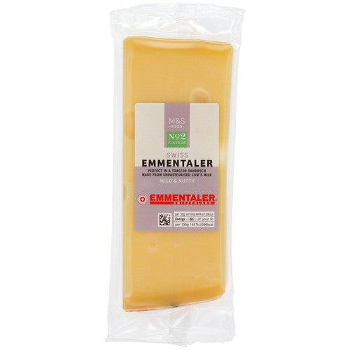 This classic M&S Swiss Emmental is expertly crafted in Switzerland to achieve its renowned mild and slightly nutty profile. It features the distinctive, characteristic holes expected from a traditional block. This cheese offers excellent versatility for both eating cold and cooking applications.