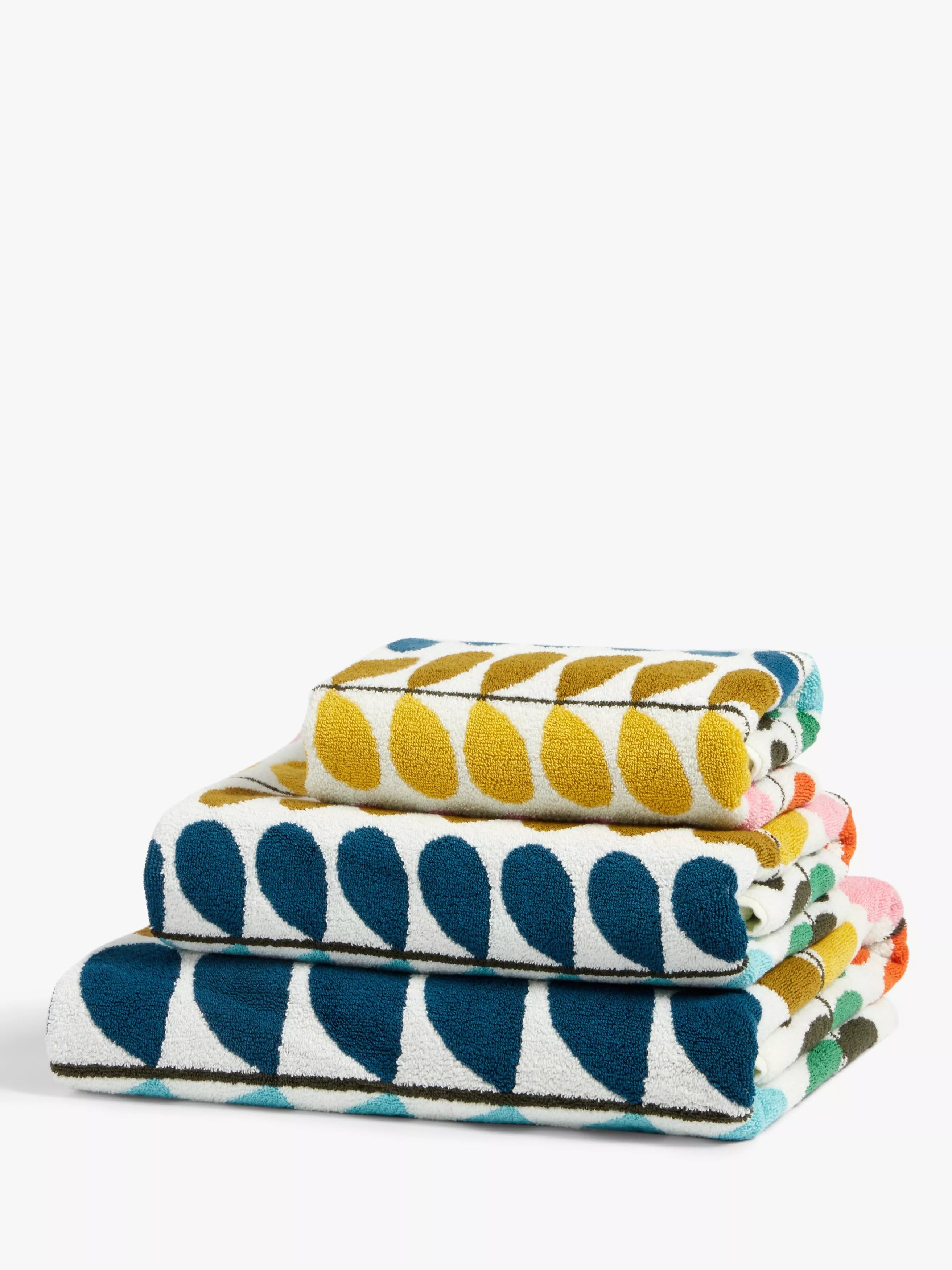 Verschönern Sie Ihr Badezimmer mit den fröhlichen Orla Kiely Duo Stem Handtüchern – eine entzückende Ergänzung für jedes Zuhause.