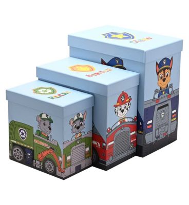 Paramount offers a creative solution to tidying up with this set of three Paw Patrol vehicle storage boxes. This set makes putting toys away an engaging activity for young fans of the series. Each container features a distinct, popular Paw Patrol hero and their corresponding vehicle for decorative appeal.