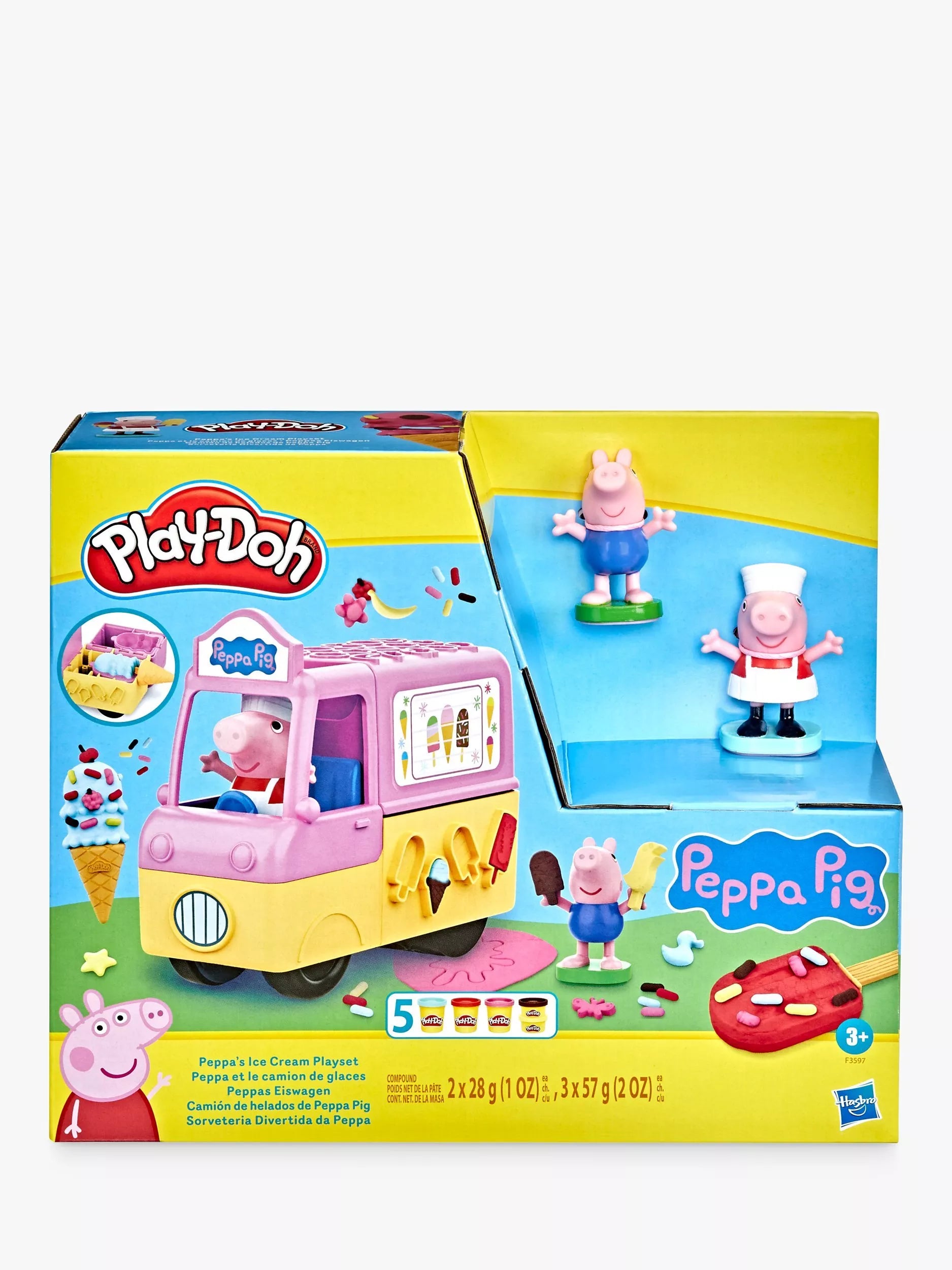 Peppa Wutz und ihr Bruder Schorsch freuen sich auf jede Menge Knetspaß mit diesem Knetset! Mit einem Eiswagen und zwei Stempelfiguren (Peppa und Schorsch) regt dieses Set die Kreativität der Kinder an.