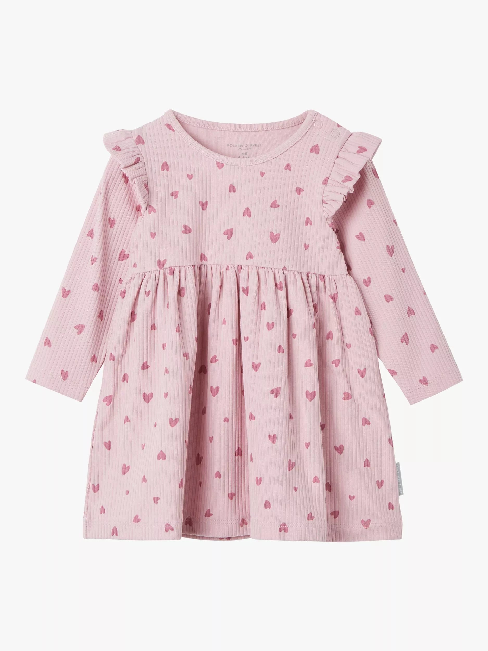 Dieses langärmelige Kleid aus Bio-Baumwollmischung im A-Linien-Schnitt ist besonders bequem. Es ist mit einem herzförmigen Muster bedruckt und lässt sich dank der Druckknöpfe an den Schultern leicht anziehen.