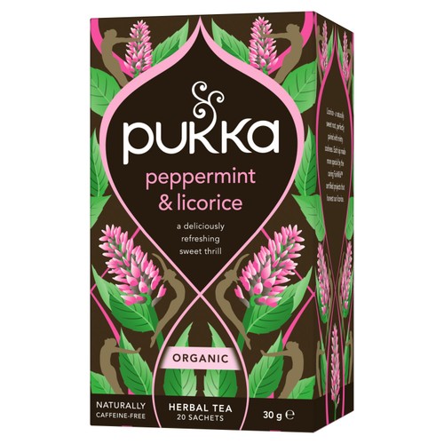 This Pukka Organic Peppermint & Licorice blend offers 20 ethically sourced, plant-based tea bags, suitable for home composting. Expertly blended, this infusion is designed to feel soothing, especially after a meal. The combination of peppermint and licorice delivers a beautifully balanced profile of comforting and cooling tastes.