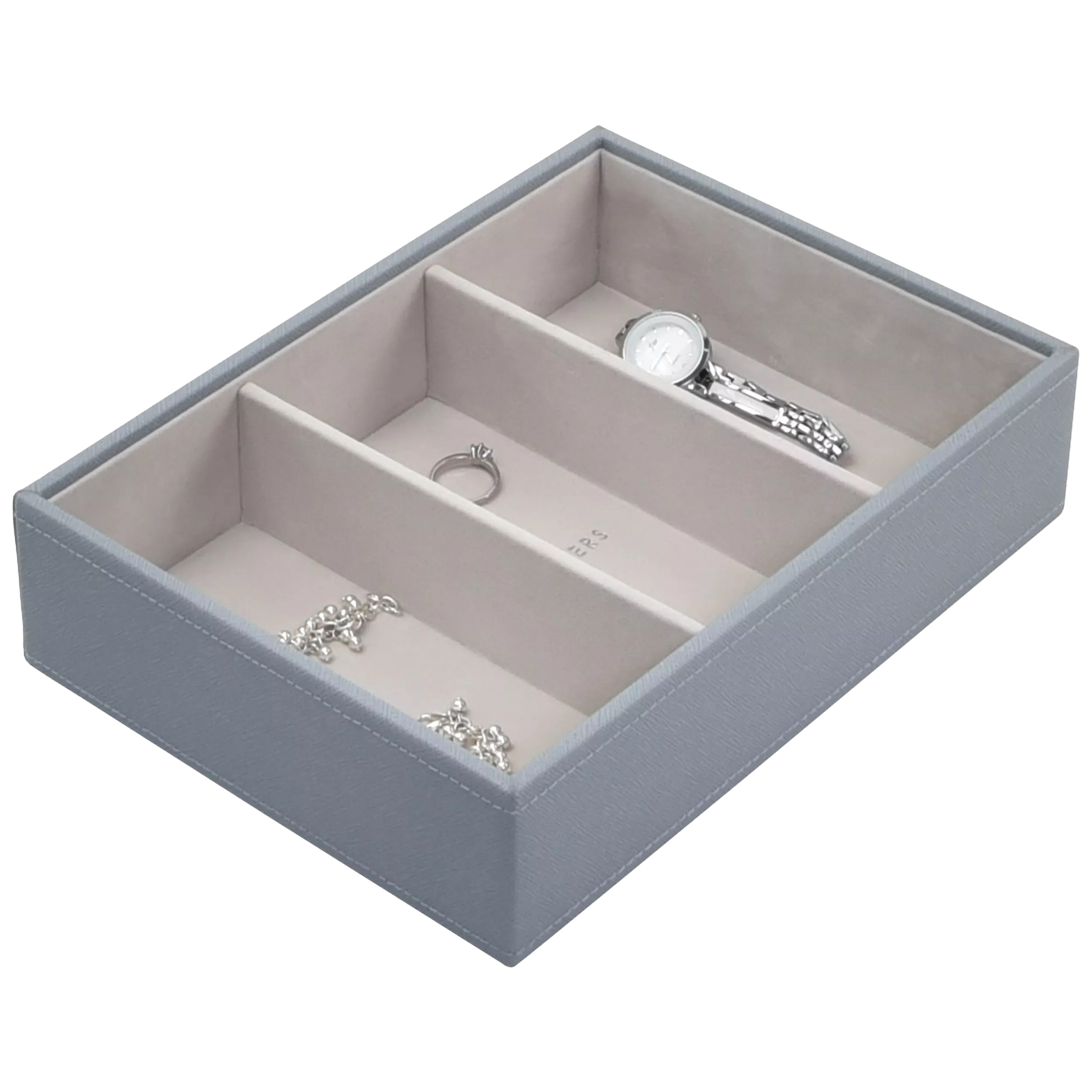 Mit der Stackers Classic Uhren- und Accessoires-Ablage organisieren Sie Ihre Accessoires mühelos und stilvoll. Die tiefe, dreiteilige Ablage bietet viel Platz für Ihre wertvollen Besitztümer und ist damit ein Must-have für jeden, der Wert auf Ordnung legt. Sie ist die perfekte Lösung, um Uhren, Armbänder und Sonnenbrillen ordentlich und griffbereit aufzubewahren.