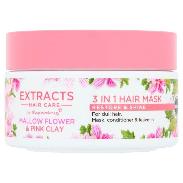 Verleihen Sie stumpfem und glanzlosem Haar neuen Glanz mit der Superdrug Restore Shine 3-in-1 Haarmaske. Die Formel mit Malvenblüte und rosa Tonerde sorgt für geschmeidiges, strahlendes Haar mit mehr Glanz. Sie können die Maske, den Spül-Conditioner oder den Leave-in-Conditioner verwenden – Sie haben die Wahl.