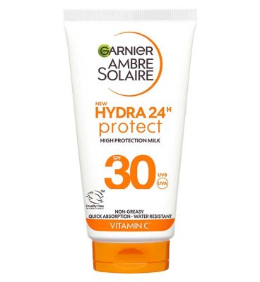 This Garnier Ambre Solaire Hydra Sun Cream offers very high SPF 30 protection in a convenient 50ml travel size format. Enriched with Vitamin C, this formula is designed to hydrate the skin for up to 24 hours. It delivers advanced protection against immediate sun-induced damage caused by UVB rays.