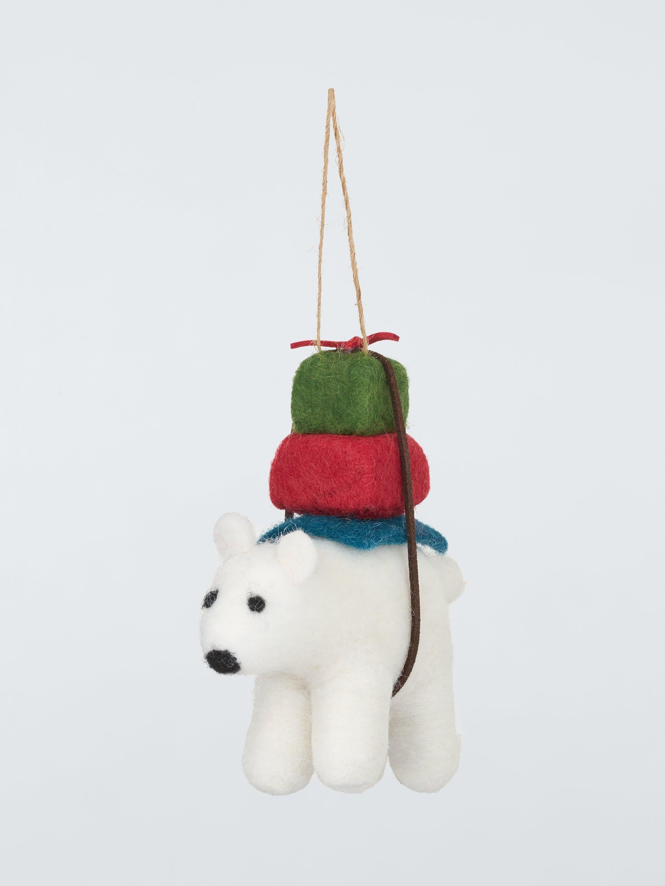 Cette décoration de sapin Ancient Wonders apporte une touche de charme festif à votre intérieur. Confectionné en feutrine douce, cet ours polaire tient de délicats petits cadeaux, ajoutant une note de texture à votre décoration. Un ajout ravissant à vos décorations de Noël cette année. Une pièce unique à conserver précieusement.