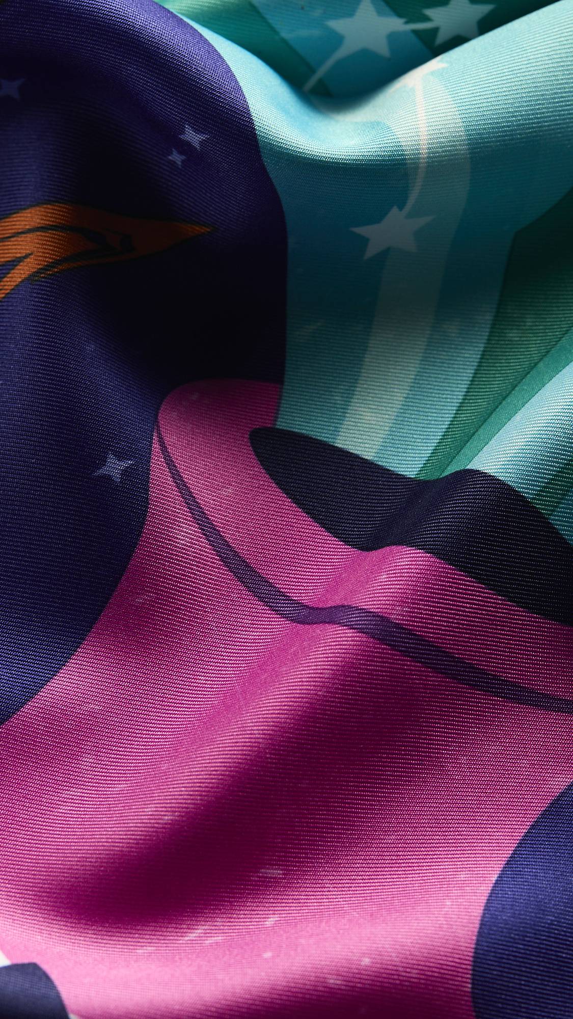 Ce Knot Wrap est composé à 100 % de polyester recyclé, fabriqué à partir de bouteilles en plastique recyclées. Les bouteilles sont collectées selon la norme GRS (Global Recycled Standard), puis lavées, filées et broyées. Ces copeaux sont fondus et passent dans une filière fine qui extrude le plastique en fil. Le tissu est ensuite imprimé par transfert thermique, ce qui permet d'obtenir une grande précision et des effets picturaux. Une fois imprimé, il est cousu et fini dans la province d'Anhui, en Chine. Ce Knot Wrap est conçu pour être utilisé à l'infini : il peut remplacer le papier cadeau, emballer votre déjeuner ou même servir de foulard. N'hésitez pas à le transmettre, à le réutiliser et, une fois usé, à participer au programme Knot Swap dans les magasins participants ! Votre Knot Wrap sera lavé, rafraîchi et remis en vente. Vous pourrez alors choisir un nouveau modèle, de la même taille ou plus petit, à emporter chez vous ! Un Knot jeté, un Knot offert !