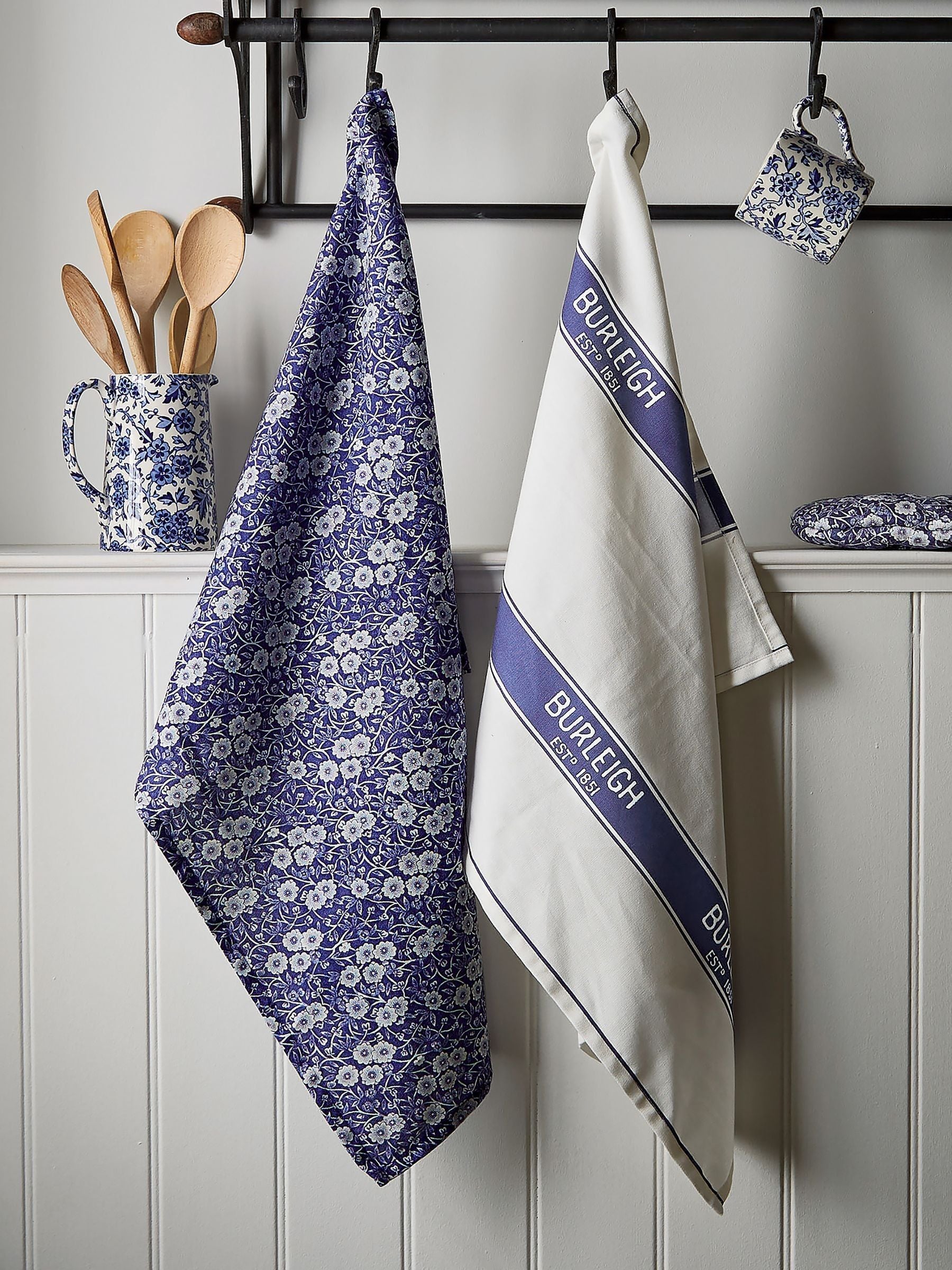 Lot de deux torchons : un torchon Calico exclusif et un torchon Burleigh à rayures indigo classiques. Vendus par paire. (70 x 50 cm).