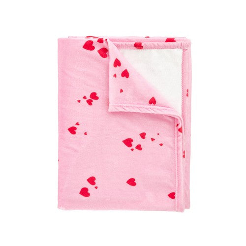 Add a touch of romance to your bedroom with this soft blanket, featuring charming ditsy hearts on a pastel pink base. Crafted from a soft and cosy material to add extra warmth to your space.