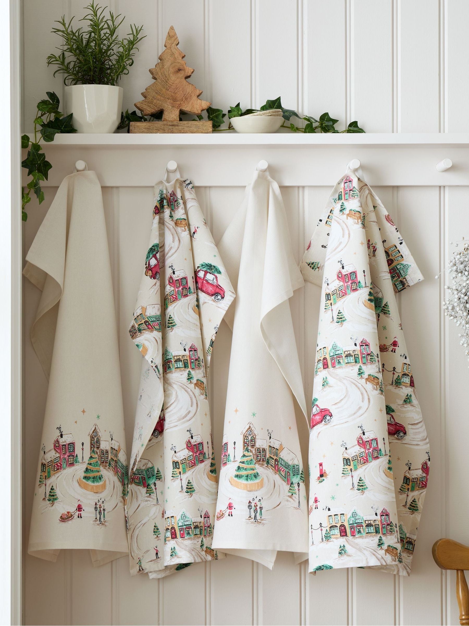 Catherine Lansfield est réputée pour son style et sa qualité, conçus et fabriqués en Grande-Bretagne. Bienvenue à Christmas Town ! Plongez dans un univers féérique où les rues sont enneigées, la place du village illuminée et décorée, et où règne la magie des fêtes. Ornés de petits bonshommes de neige, de sapins et de boîtes aux lettres sur un fond enneigé, ces torchons apportent une touche festive à votre cuisine. Confectionnés en pur coton résistant et facile d'entretien, ils sont parfaits pour un usage quotidien pendant les fêtes. Coton pur : les fibres naturelles du coton offrent un toucher doux et agréable. Résistants : conçus pour résister à un usage et à des lavages fréquents. Absorbants : ils absorbent facilement les liquides renversés pour une maison propre et sèche. Laver avant utilisation. Lavage en machine à 30 °C. Séchage à l'air libre uniquement. Taille unique.