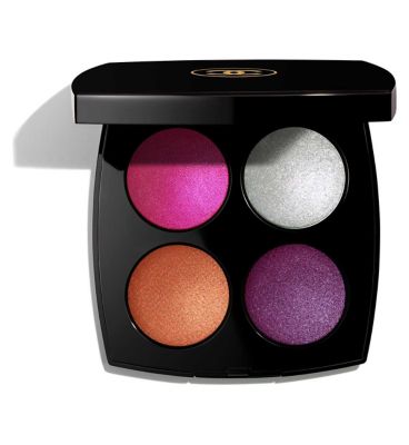 A palette of four new limited-edition eyeshadow and blush shades featuring pearly satin finishes. A fuchsia pink; a silver top coat; a copper coral; and a burnished purple-brown with blue iridescence.With this generously sized palette, the potential for luminous holiday makeup looks is limitless.