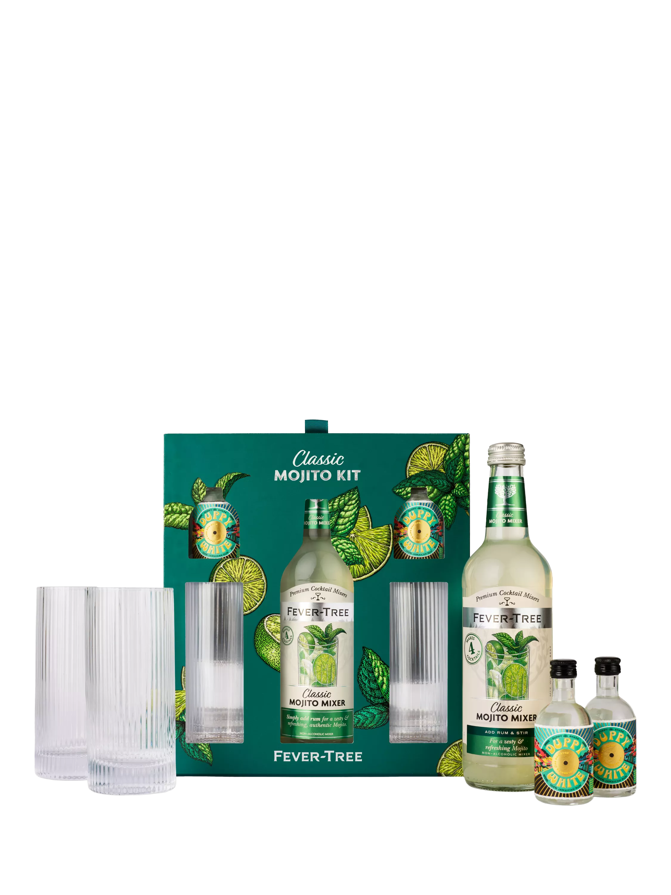 Préparer un mojito parfait à la maison n'a jamais été aussi simple. Le kit à cocktails Fever-Tree pour mojito comprend : le mélange pour mojito classique Fever-Tree, 2 bouteilles de rhum blanc et 2 verres highball.