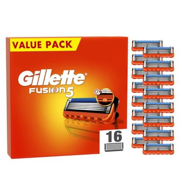 Achieve a close and enduring shave using these Gillette Fusion5 Blade Refills, packaged in a 16-count supply. These cartridges are engineered with five precise blades to ensure a very smooth experience. The design focuses on maintaining comfort during each use.