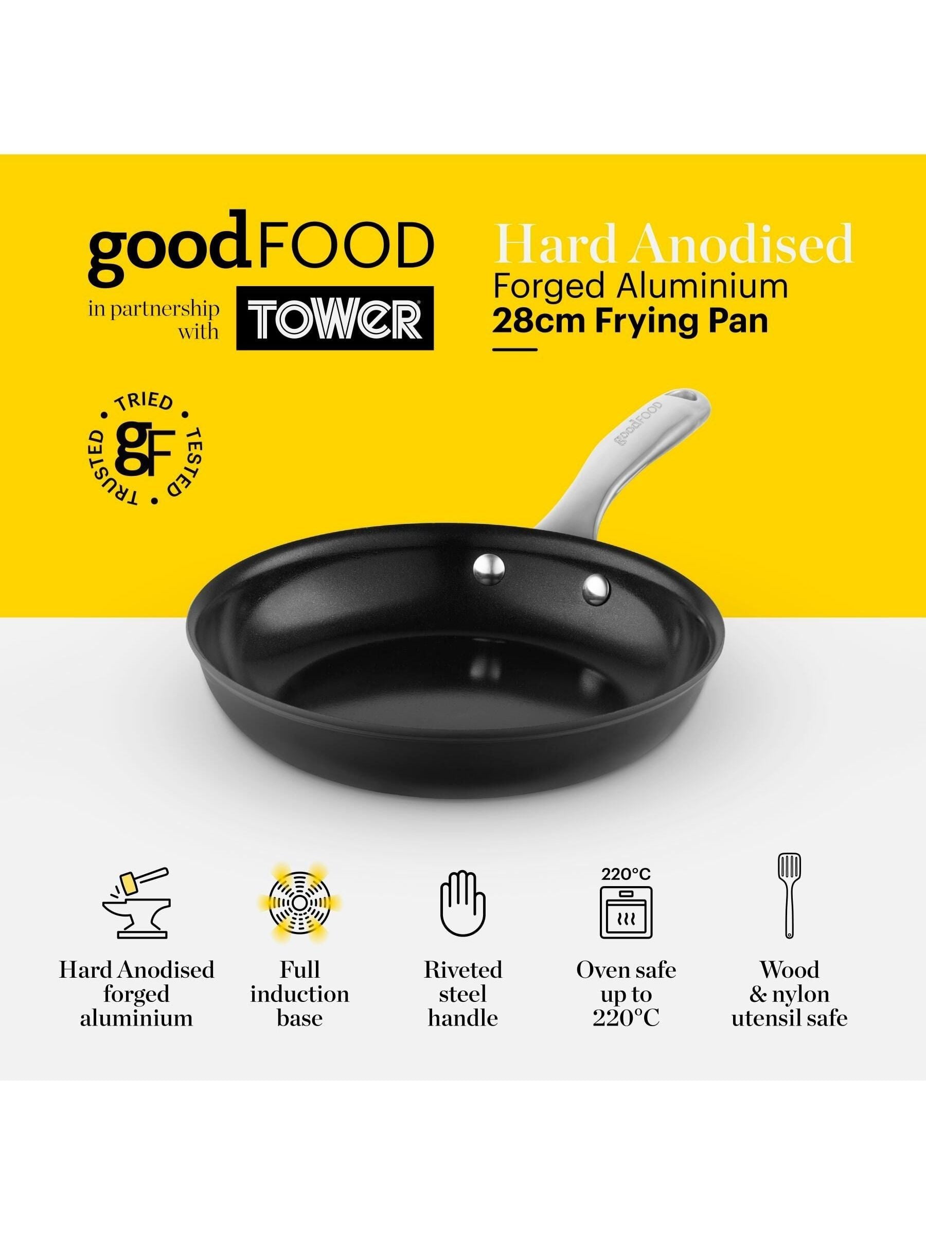 Optimisez votre cuisine avec cette poêle de 28 cm issue de la collaboration entre Good Food et Tower. Spécialement conçue pour être utilisée avec la vaste bibliothèque de recettes Good Food, cette poêle permet un service facile et sans débordements. Fabriquée en aluminium forgé anodisé dur de 3,5 mm d'épaisseur, elle offre une montée en température rapide et homogène pour une cuisson parfaite, sans points chauds. Sa poignée en acier riveté assure confort et prise en main optimale. Notre revêtement antiadhésif en céramique de qualité supérieure est 10 fois plus résistant que les revêtements antiadhésifs classiques et garantit un démoulage parfait et une cuisson saine avec un minimum d'huile. De plus, il est garanti sans PFAS, PFOA, plomb ni cadmium. Compatible four jusqu'à 220 °C, cette poêle est également compatible avec tous les types de feux, y compris l'induction, grâce à son fond à induction. Elle passe au lave-vaisselle pour un nettoyage simple et rapide, mais le lavage à la main est recommandé pour préserver l'éclat du revêtement en céramique. TESTÉ ET APPROUVÉ PAR GOOD FOOD : Capable de saisir parfaitement un steak ou de faire revenir un poisson à la poêle, cette poêle est idéale pour la cuisine familiale. Tous les produits Good Food, en partenariat avec Tower, ont été testés et approuvés par notre équipe d'experts en création de recettes afin de garantir leur parfaite compatibilité avec notre vaste bibliothèque en ligne de plus de 15 000 recettes uniques. USTENSILES DE CUISSON DE HAUTE QUALITÉ : Fabriquée avec soin en aluminium forgé anodisé dur de 3,5 mm d'épaisseur et dotée d'une poignée en acier riveté, cette poêle est durable et conçue pour durer. L'aluminium anodisé dur combine l'aluminium à un revêtement antiadhésif pour une durabilité accrue. 30 % plus résistant que l'acier inoxydable, il est conçu pour un usage quotidien intensif, ce qui le rend idéal pour la cuisine de tous les jours, que vous soyez novice ou chef confirmé. COMPATIBLE AVEC TOUS LES TYPES DE PLAQUES DE CUISSON : Le fond à induction assure une répartition rapide et homogène de la chaleur, pour une cuisson parfaite et sans points chauds. Il permet également d'utiliser la poêle sur tous les types de plaques de cuisson, y compris l'induction, pour une grande polyvalence. Vous pouvez également utiliser cette poêle au four jusqu'à 220 °C, ce qui la rend idéale pour la vaste bibliothèque de recettes en ligne Good Food. REVÊTEMENT ANTIADHÉSIF CÉRAMIQUE DE QUALITÉ SUPÉRIEURE : Ce revêtement céramique de qualité supérieure est 10 fois plus résistant que les revêtements antiadhésifs traditionnels et offre un démoulage optimal et une cuisson plus saine avec peu ou pas d'huile. Il est exempt de PFAS, PFOA, cadmium et plomb, et vous pouvez utiliser des ustensiles en nylon, silicone et bois sans risque de l'endommager. POIGNÉE EN ACIER RIVETÉ DE QUALITÉ SUPÉRIEURE : La poignée en acier riveté offre un confort accru, une meilleure résistance et une plus grande maniabilité pendant la cuisson. Grâce à sa conception en acier, la poêle peut être utilisée au four jusqu'à 220 °C. La poignée chauffe pendant la cuisson ; l'utilisation d'un torchon ou d'un gant de protection est donc conseillée. LAVABLE AU LAVE-VAISSELLE : La poêle passe au lave-vaisselle pour un nettoyage simple et rapide, mais le lavage à la main est recommandé pour préserver le revêtement céramique. GARANTIE DE 25 ANS : Qualité professionnelle avec une garantie standard d'un an et une extension optionnelle de 24 ans, sous réserve d'enregistrement du produit en ligne (le revêtement céramique bénéficie d'une garantie de 5 ans).