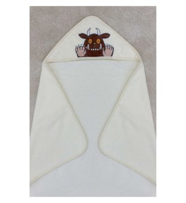 La serviette à capuche Gruffalo, douce et couleur crème, est ornée d'une broderie représentant le Gruffalo, avec ses moustaches, ses dents, ses yeux et ses oreilles brodés. Fabriquée en coton 100 % issu de sources responsables, cette serviette à capuche est douce, absorbante et respectueuse de la peau délicate des tout-petits. Elle est idéale après le bain ou le change de bébé pour le garder au sec, confortable et bien au chaud.