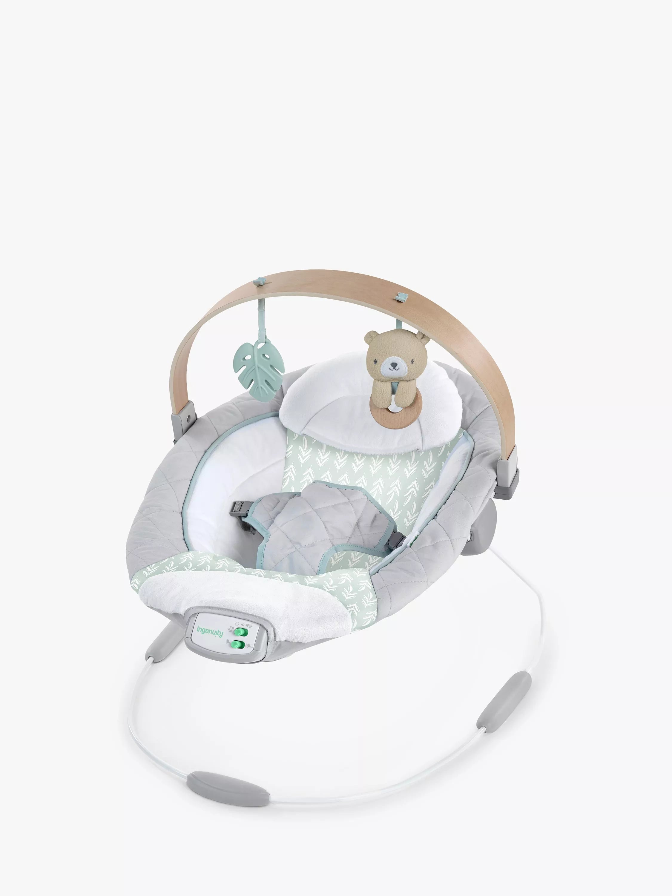 Ce transat chic est livré avec une arche de jeux en bois issu de forêts gérées durablement, une peluche ours Nate avec un anneau en bois naturel (amovible) et un jouet en silicone en forme de feuille. Véritable concentré de luxe et de fonctionnalités, le Cozy Spot diffuse également des mélodies pour divertir bébé. Son volume est réglable et il est doté d'un arrêt automatique pour plus de praticité. Il possède un appui-tête amovible et un harnais de sécurité à 3 points, créant ainsi un espace confortable et sécurisé pour bébé. De plus, son entretien est un jeu d'enfant grâce à son coussin d'assise lavable en machine.