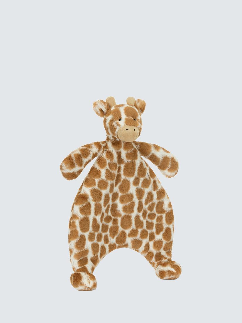 Ce doudou girafe timide Jellycat offre un réconfort rassurant et une douce compagnie aux bébés. Confectionné avec soin à partir de fibres douces et recyclées, ce jouet adorable arbore une fourrure à motifs emblématique pour une stimulation tactile optimale. Les tout-petits adoreront tenir une main douce ou câliner le ventre moelleux et non rembourré lors de leurs siestes paisibles.
