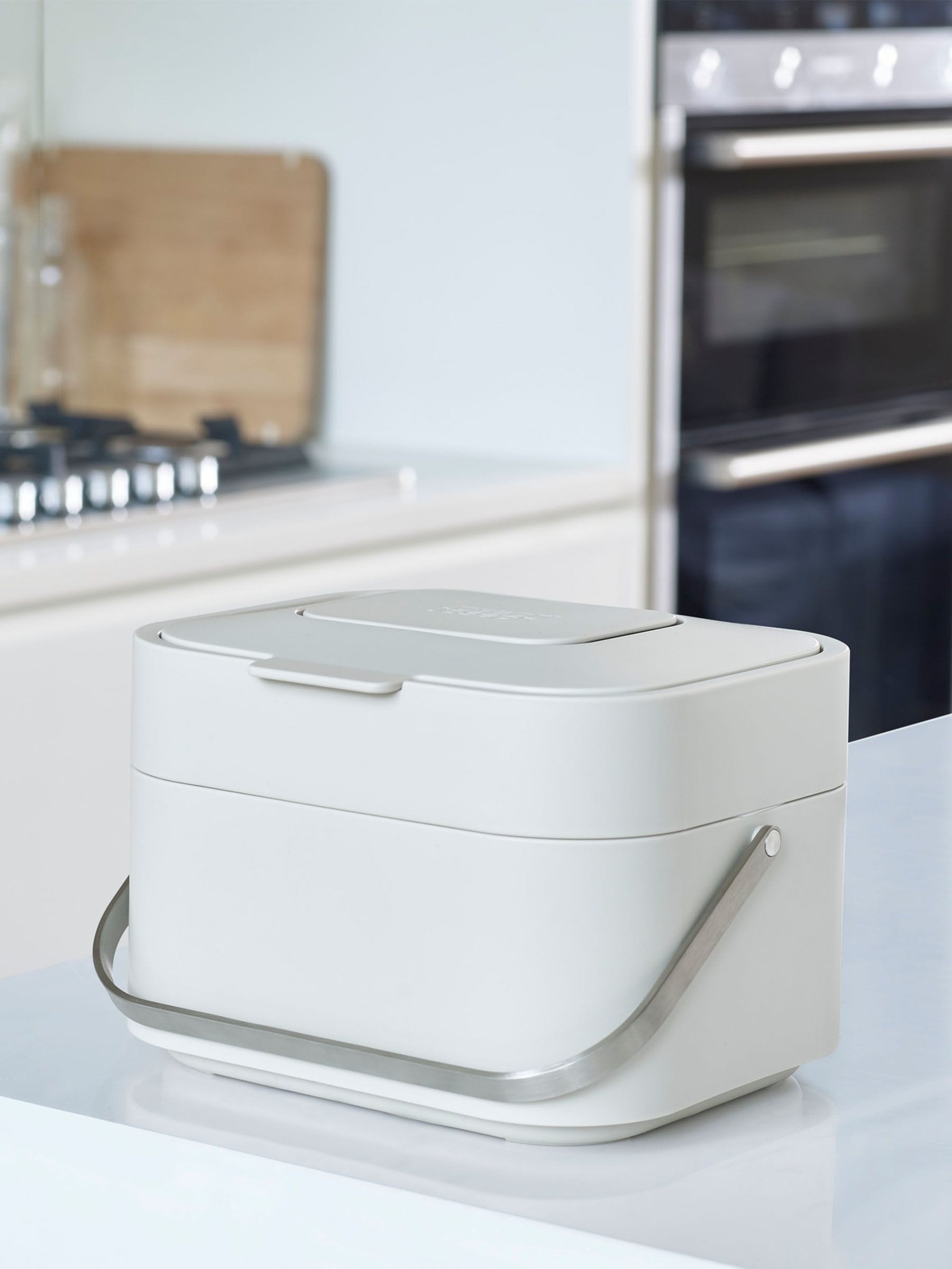 Idéal pour être rangé sur un plan de travail, il est également compatible avec les systèmes de tri sélectif. Des sacs compostables sur mesure (Iw2) sont disponibles séparément pour un ajustement parfait. Nettoyage facile avec un chiffon humide.