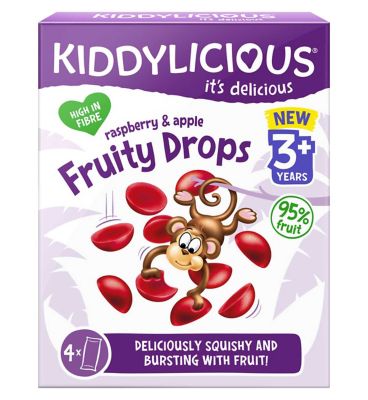 These Kiddylicious Fruity Drops offer a convenient and tasty snack option specifically suited for pre-schoolers. Made predominantly from fruit, they provide a satisfyingly squishy texture that young children enjoy. This multipack ensures you always have raspberry and apple treats available for grazing throughout the day.