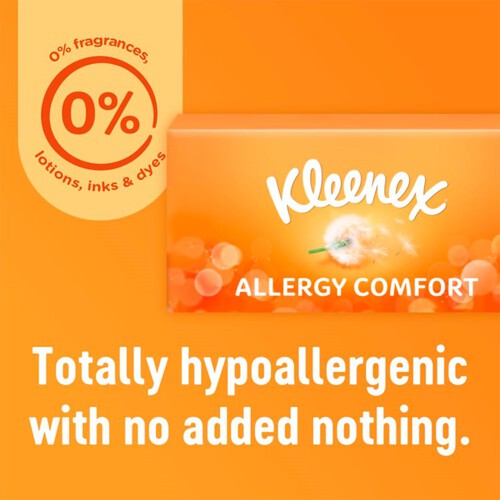 - Kleenex Allergy Comfort™ tissues are designed to be extremely gentle and ultra absorbent for the nose and around the eyes, for an instant comforting feeling when you need it most.