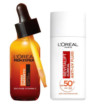 This L'Oréal duo provides essential daily care combining targeted treatment with high-level sun defence. The Vitamin C Serum delivers a shot of 10% pure Vitamin C to invigorate the skin. Paired with the Revitalift Anti-UV Fluid, this set offers robust daily protection against environmental stressors.