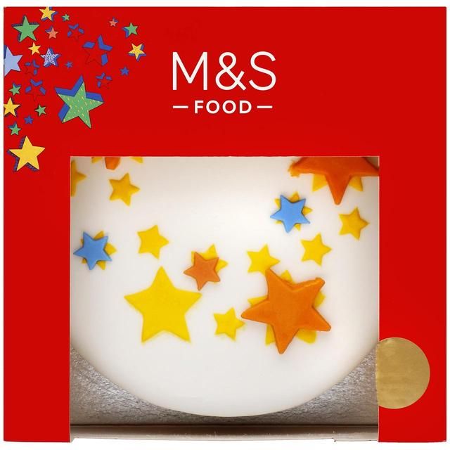 Gâteau étoile M&S à la crème au beurre et à la confiture de framboises. Un gâteau éponge léger fourré de crème au beurre et de confiture de framboises, recouvert d'un glaçage onctueux et décoré de glaçage royal. Pour 8 personnes.