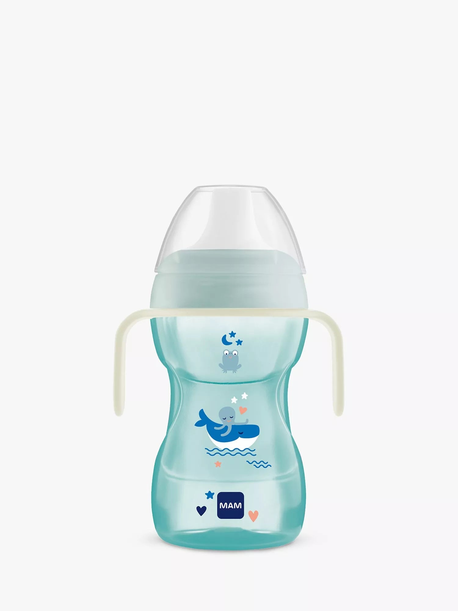 Choisissez entre une tasse anti-fuites et une tasse à débit libre en ajoutant ou en retirant simplement la valve transparente ; ce système facilite également le nettoyage. Les poignées ergonomiques antidérapantes et phosphorescentes permettent une prise en main facile et confortable pour les petites mains de bébé, et les parents peuvent ainsi retrouver la tasse sans problème la nuit sans réveiller leur tout-petit. La tasse est ornée de jolis motifs nocturnes, parfaits pour la tétée du soir.