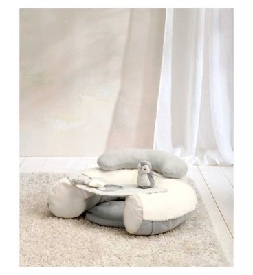 This Mamas & Papas floor seat offers essential upright support for babies learning to sit independently. It features a comfortable, plush interior designed for security and sensory engagement during early playtime. The safe, bolstered structure helps support your child as they interact with the surrounding environment.