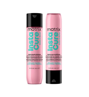Matrix Instacure Build-A-Bond Mighty Bonds Shampoo (300ml) cleanses, nourishes and strengthens damaged hair weightlessly whilst helping to repair weakened bonds. Enriched with Citric Acid to strengthen and Squalane to soften and smooth, the luxurious creamy texture is suitable for use on colour-treated and highlighted hair to repair damage.