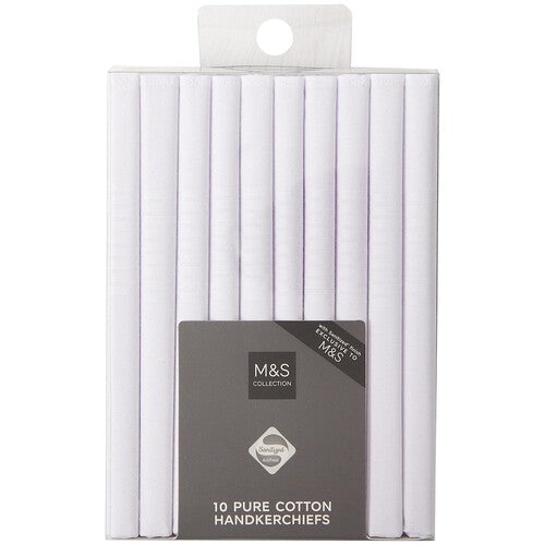 This practical pack of ten M&S handkerchiefs offers reliable softness and lasting freshness for daily use. They are constructed entirely from 100% cotton material featuring a traditional plain weave pattern.