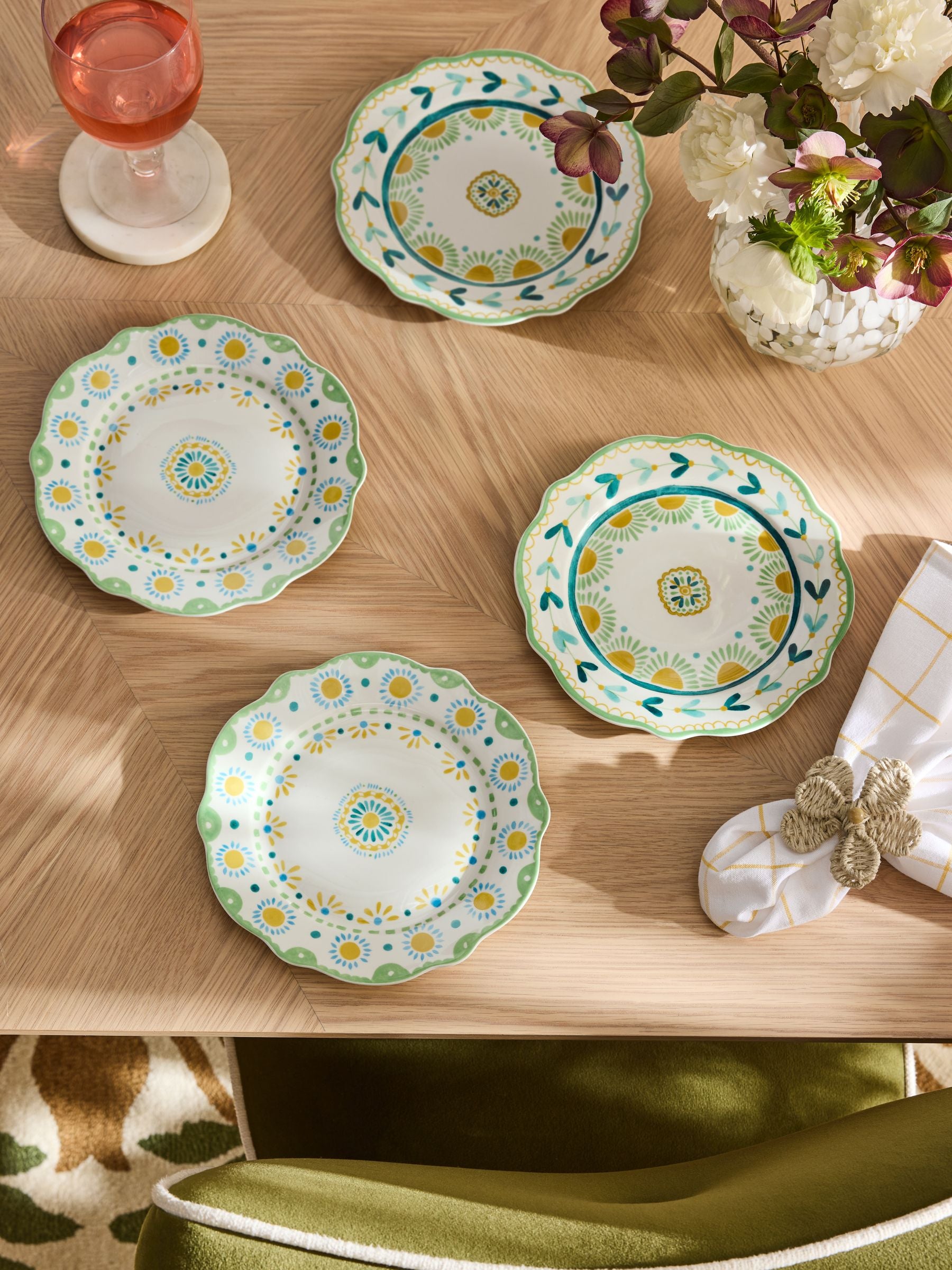 Increase quantity for Assiettes à dessert Nina Campbell, lot de 4, motif floral jaune/turquoise