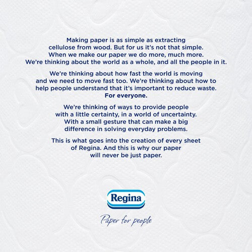 More than just paper… Every sheet of Regina Soft Bamboo quilted toilet roll is a commitment to making your life that little bit easier and support for those who believe in a greener future. For over 30 years, thanks to the strength, softness and quality of our home and personal care paper products, Regina is still at the heart of homes across the UK and Europe today.
