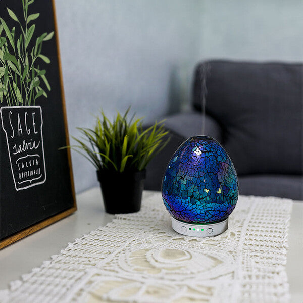 Enhance your home environment with the Aurora Cobalt Blue Mosaic Diffuser. This stylish unit features an attractive mosaic pattern that complements various interior décors. It is designed to effectively disperse your preferred essential oils throughout your space for a pleasant atmosphere.