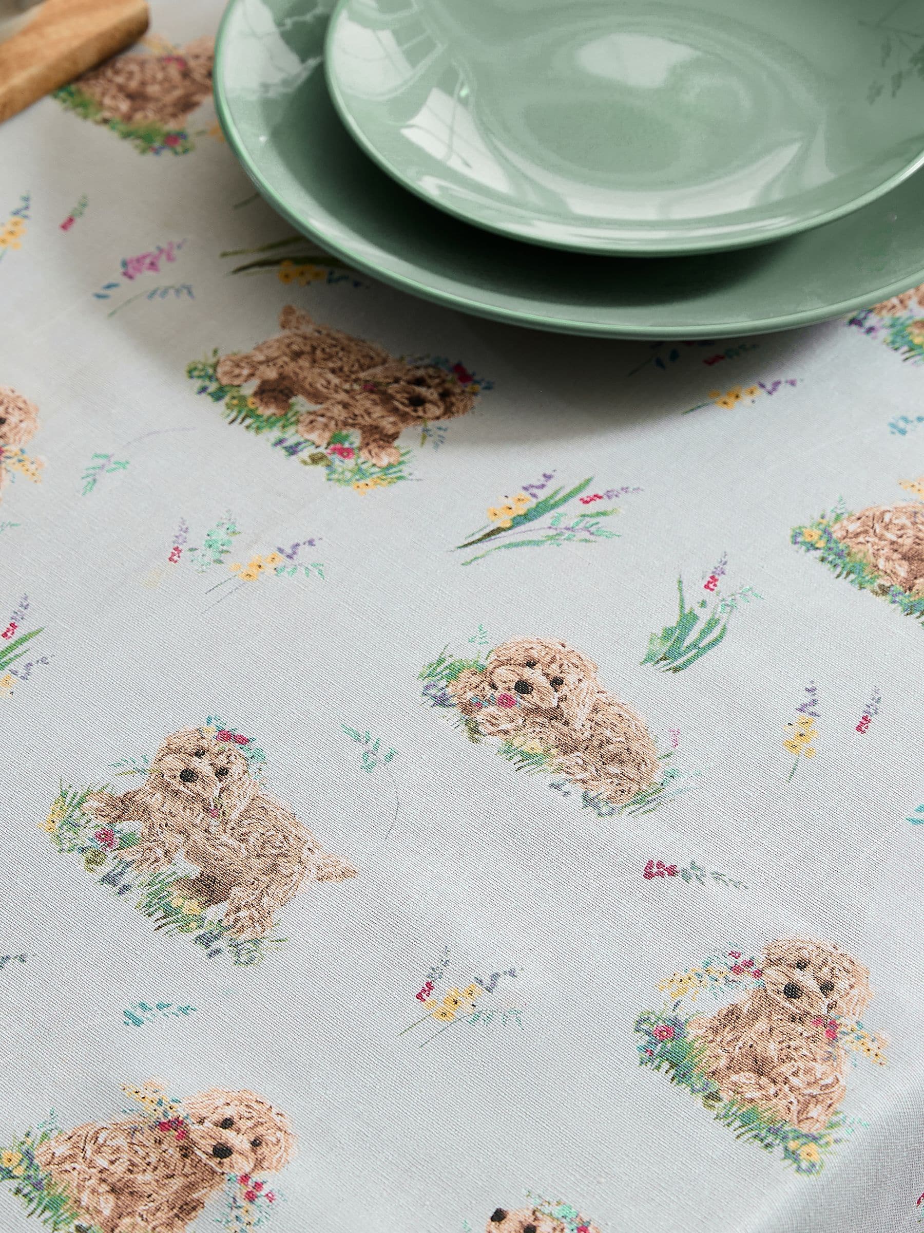 À la fois pratique et adorable, cette nappe facile à nettoyer met en scène Charlie, notre cockapoo, au milieu d'un joli motif floral. Idéale pour rafraîchir votre salle à manger, cette nappe 100 % coton est disponible en plusieurs tailles pour s'adapter à toutes les tables et passe en machine.