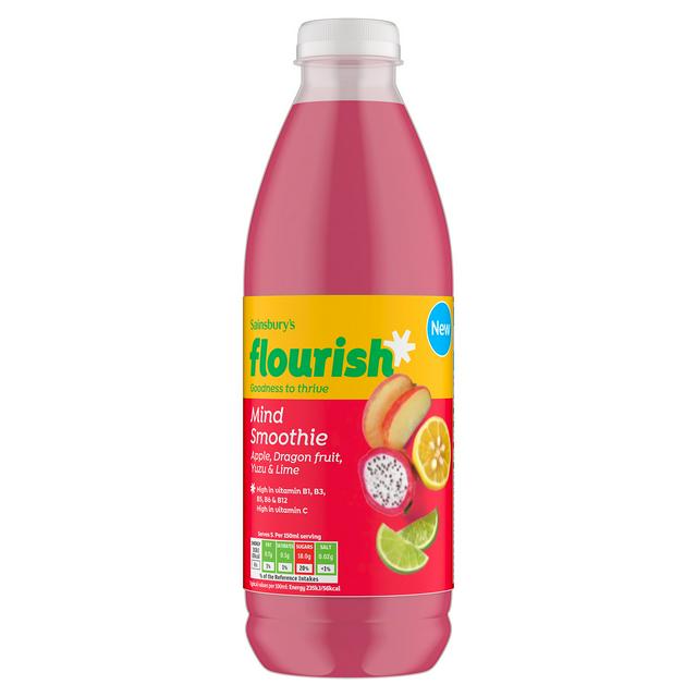 INGRÉDIENTS : Jus de pomme (38 %), purée de pomme (20 %), purée de banane, jus de raisin blanc, purée de fruit du dragon (3,5 %), jus de betterave, jus de citron vert, jus de yuzu, concentré de fruits et légumes (concentré de patate douce, concentré de pomme, concentré de radis, concentré de cerise), vitamine B5, vitamine C, vitamine B6, niacine, vitamine B12, vitamine B1.