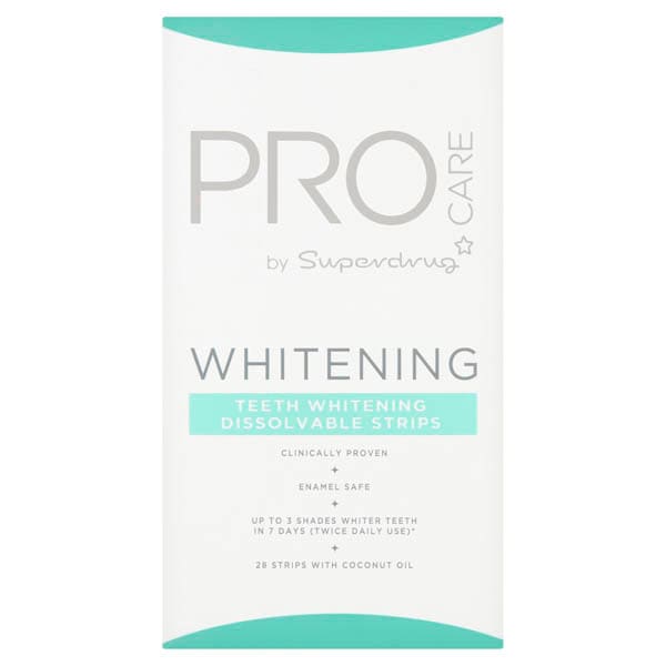 Les bandes blanchissantes dissolvables Superdrug Procare à l'huile de coco ont été spécialement formulées par des experts en soins bucco-dentaires pour blanchir les dents en toute simplicité. Aucune retouche n'est nécessaire après utilisation. Il a été prouvé que cette formule blanchissante permet d'obtenir des dents visiblement plus blanches en 7 jours. Faciles à utiliser, elles sont idéales pour un blanchiment nomade. Plus besoin de penser à les retirer ! Leur arôme menthe apporte une fraîcheur supplémentaire.