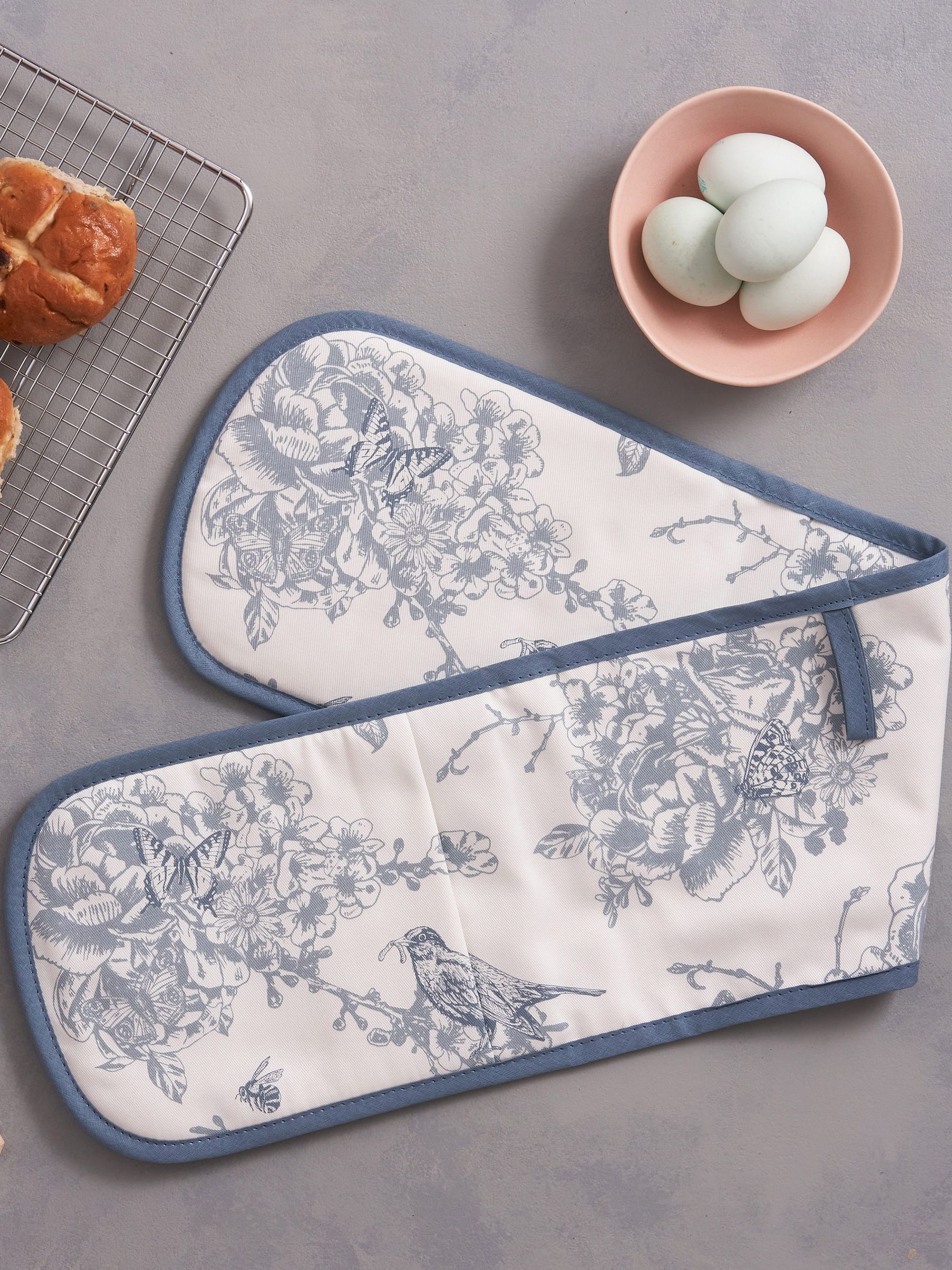 Inspiré par les fleurs, les papillons et les oiseaux emblématiques du printemps britannique, ce gant de cuisine en coton de Victoria Eggs invite la nature dans votre cuisine et vous donnera un air printanier lors de la préparation de votre prochain repas. Fabriqué à la main en Grande-Bretagne, imprimé sur du coton 100 %. Conforme à la norme britannique BS 6526:1998 (protection optimale des mains). Dimensions : environ 18 x 82 cm.