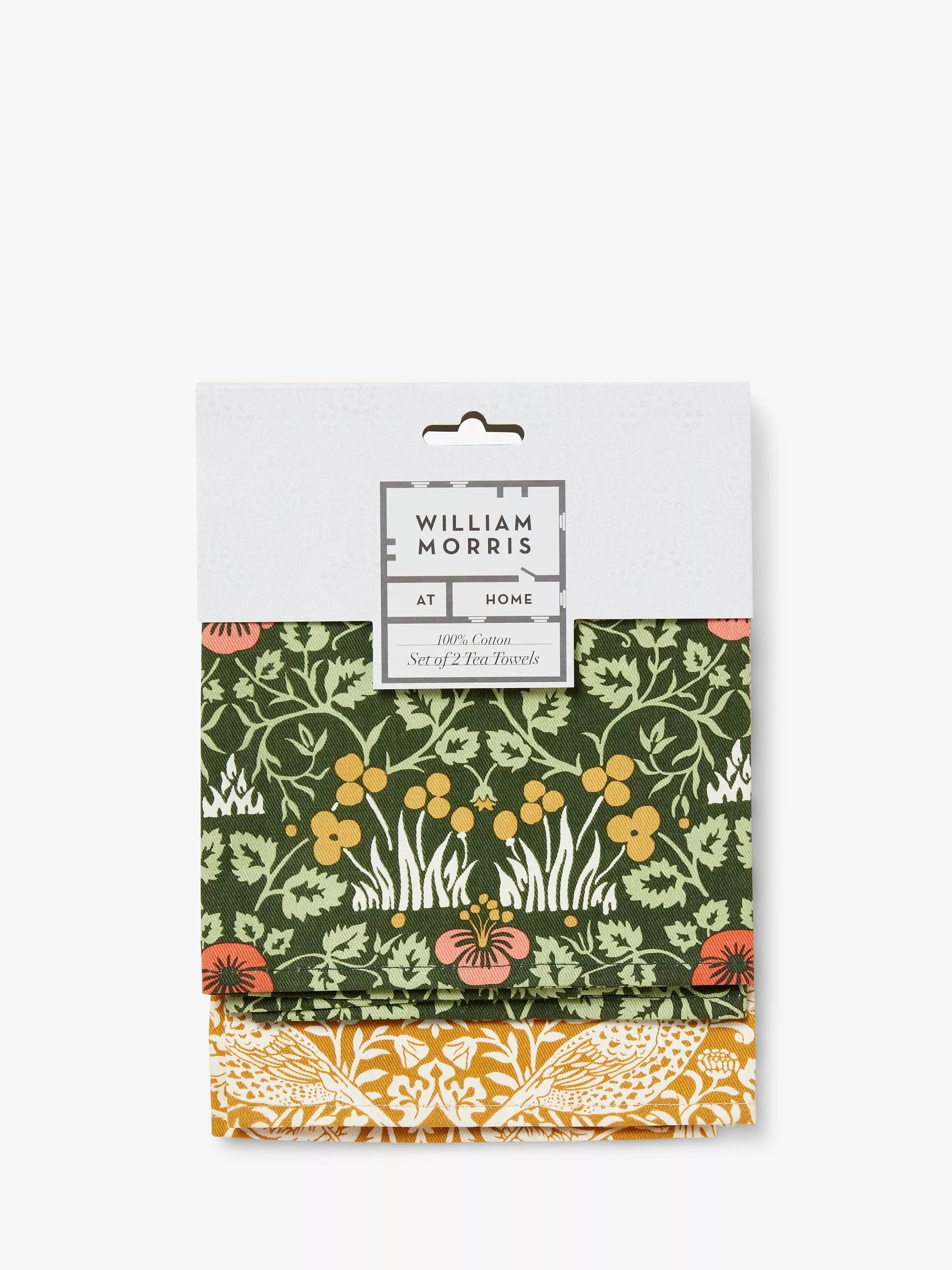 Ces torchons mesurent 65 x 44,5 cm et sont munis d'une boucle pratique dans chaque coin supérieur gauche pour les suspendre facilement dans la cuisine. Ils sont lavables en machine à basse température (30 degrés). Ils allient praticité et esthétique, dans l'esprit de William Morris.