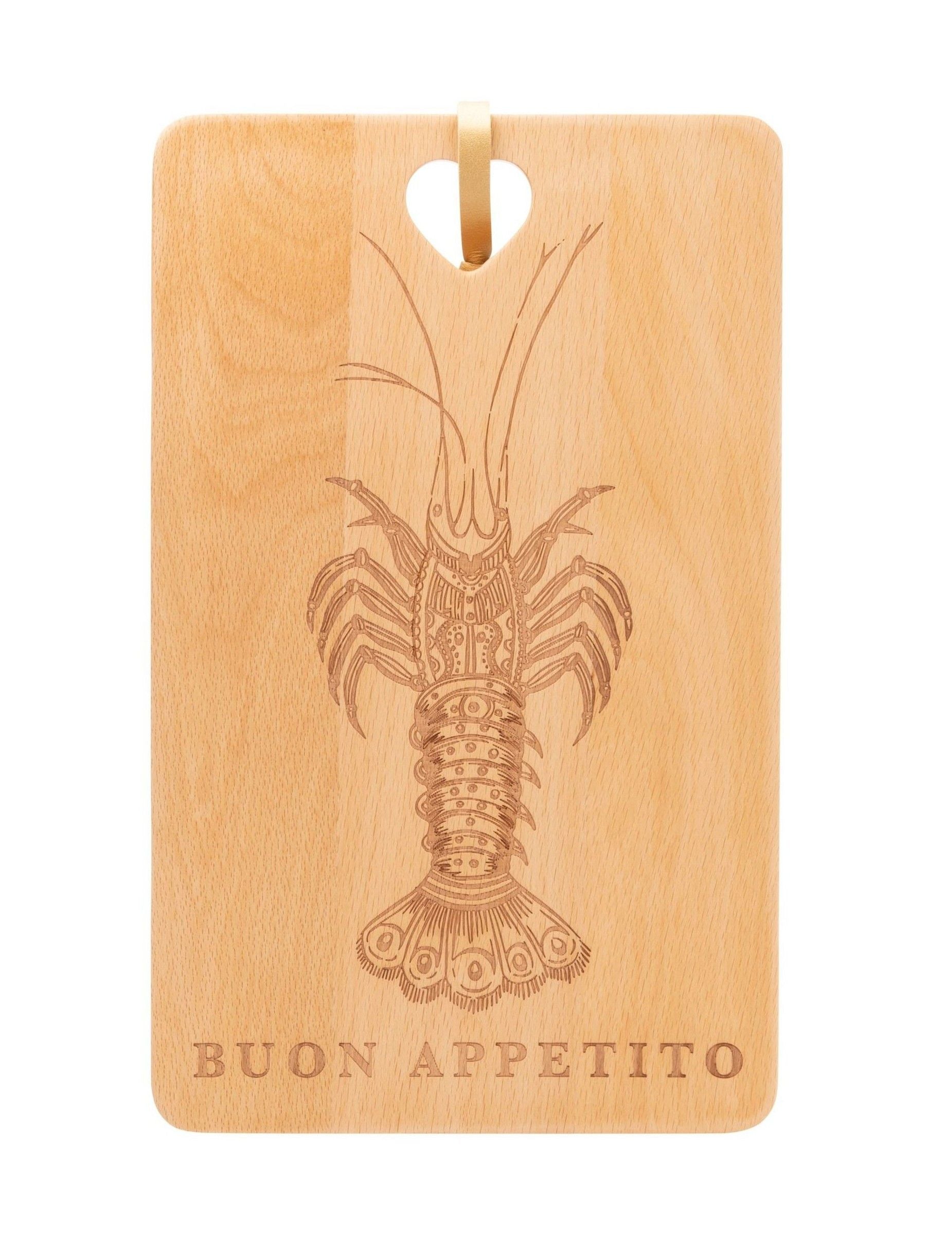 Plongez dans des aventures culinaires avec la planche à découper Homard d'Yvonne Ellen ! Ornée d'un homard finement gravé et d'un slogan sur le devant, ainsi que d'un charmant logo gravé au dos, elle apportera une touche d'élégance à votre cuisine. Dotée d'un trou en forme de cœur pour l'accrocher, elle s'accorde parfaitement avec la collection Sous l'Océan. Certifiée FSC et idéale pour présenter un délicieux repas, c'est un cadeau qui fera sensation !