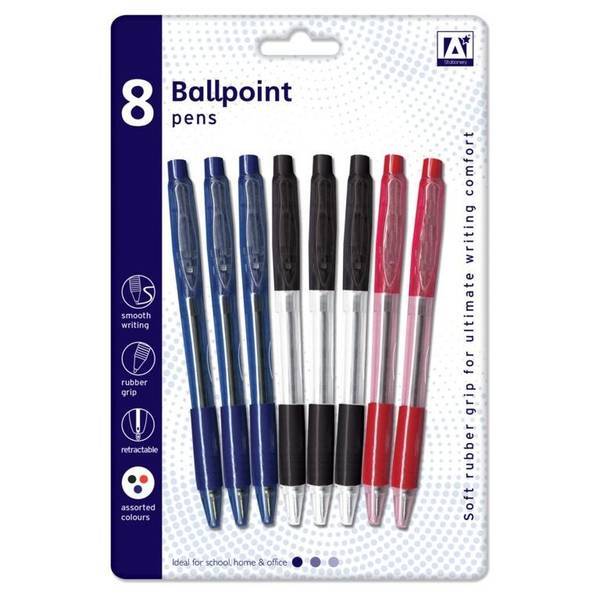 Product InformationProduct Information retractable tips each pack contains 3 x blue 3 x black 2 x red rubber grip for comfortFeaturesretractable tips each pack contains 3 x blue 3 x black 2 x red rubber grip for comfortProduct Specificationproduct code mp00065068ean 5059444055997