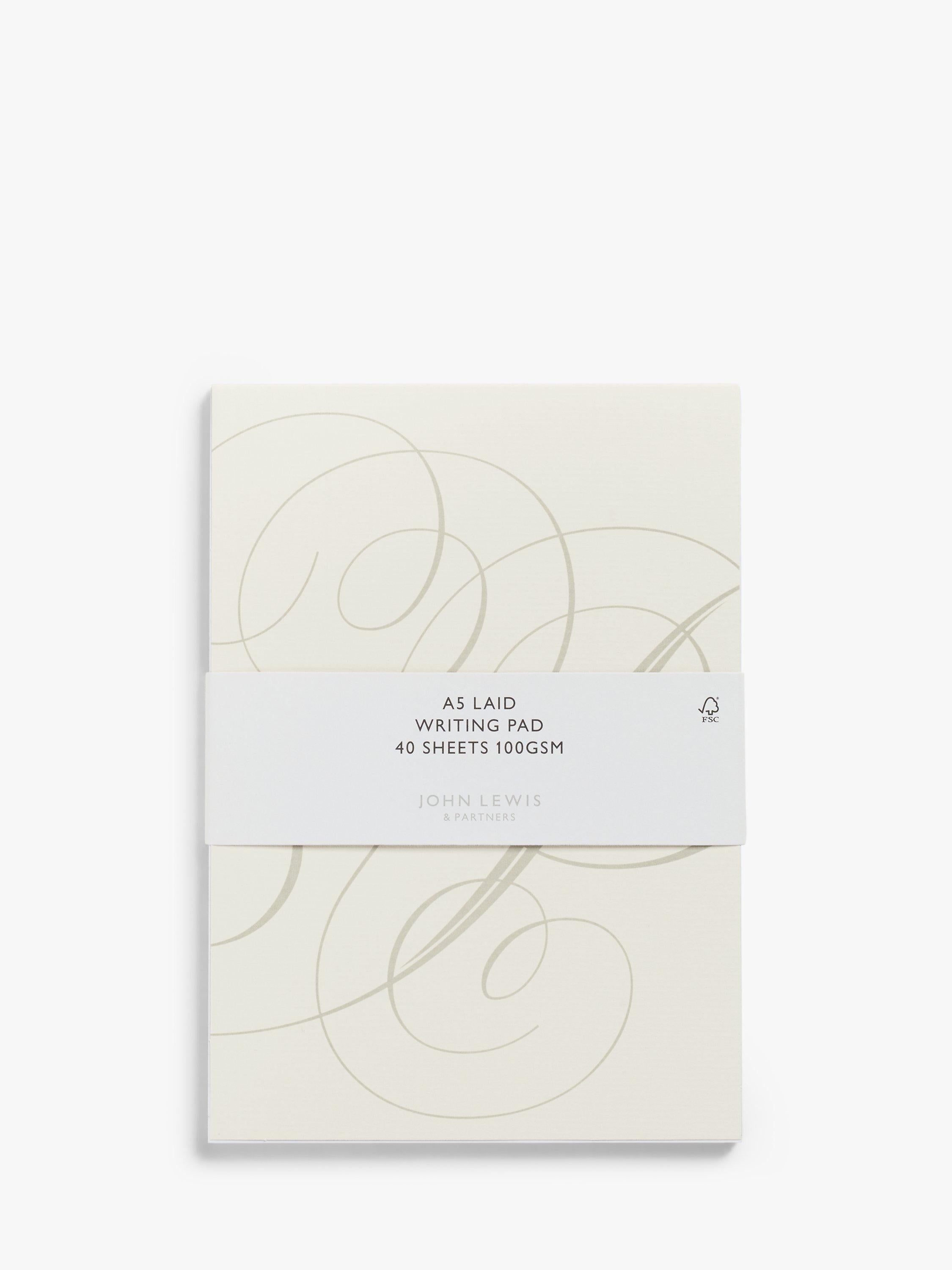 This John Lewis A5 Laid Writing Pad offers superb stationery quality for all your professional and personal correspondence needs. It features forty sheets of premium 100GSM paper stock, providing a substantial and luxurious writing surface for daily use. The distinctive Laid finish ensures excellent ink retention and classic aesthetic feel.