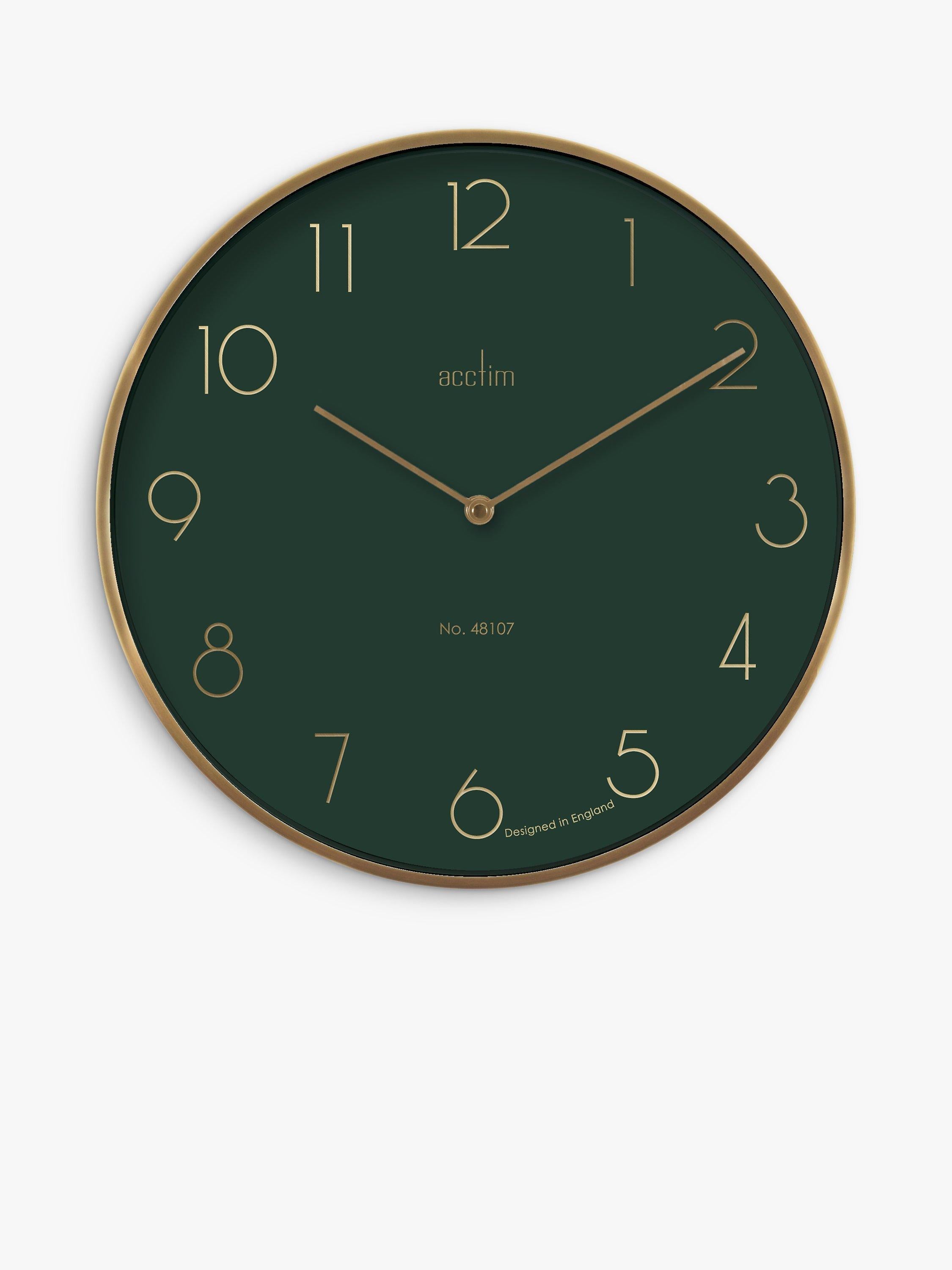 This Acctim Madison wall clock, measuring 35cm, brings a stylish modern touch to any room with its Urban Jungle Gold detailing. Featuring a richly coloured dial and clear Arabic numerals, this analogue clock ensures accurate timekeeping via its reliable quartz movement. Its metallic casing and hands offer a cohesive, premium look suitable for daily display.